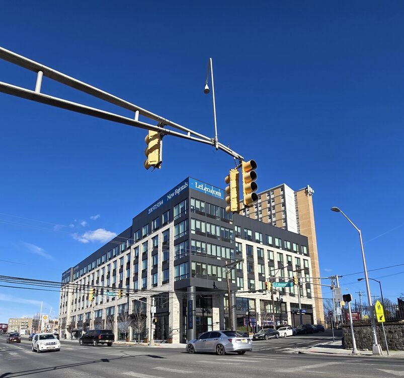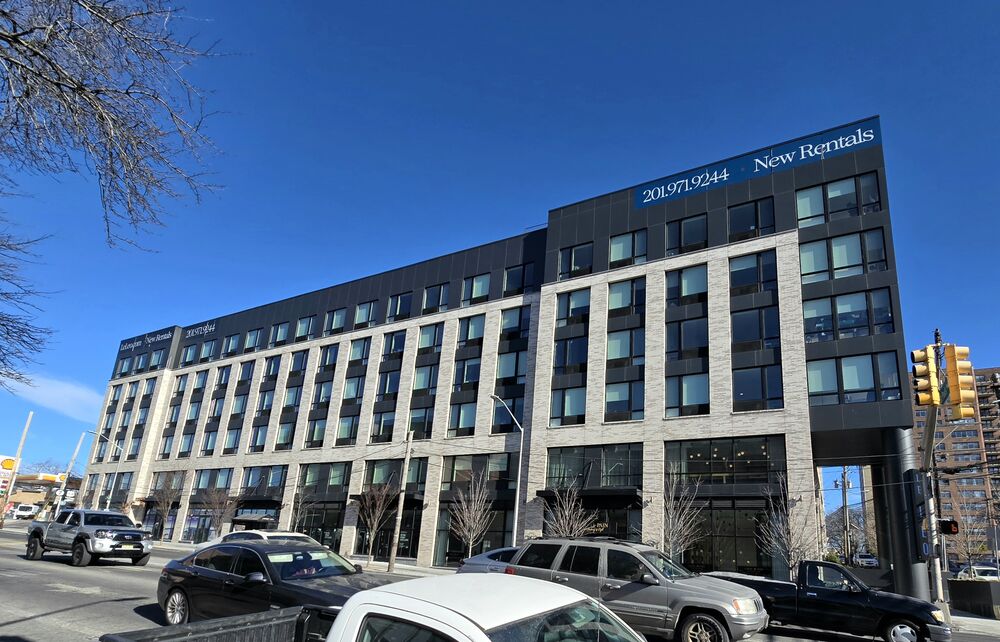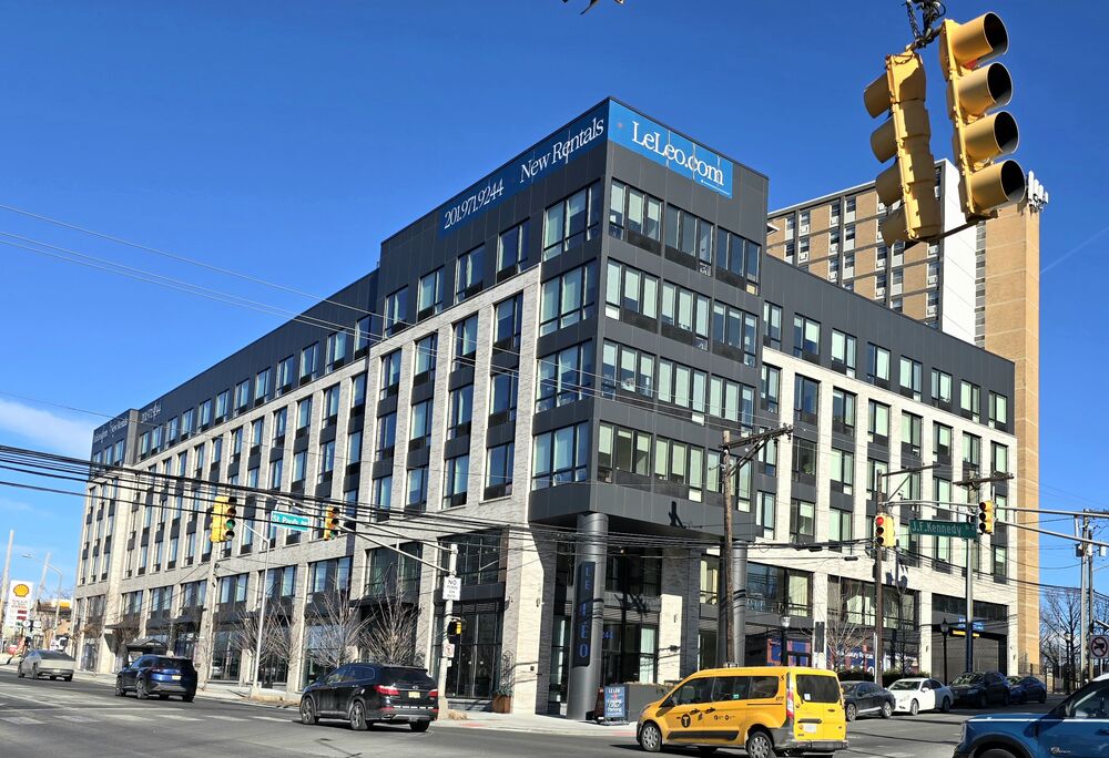 Le Léo is a newly-constructed, 99-unit luxury rental building located at 244 St. Paul's Avenue, near Jersey City's rapidly developing Journal Square. Designed by MHS Architecture, the six-story development includes amenities like a state-of-the-art fitness center, co-working space, a resident lounge, and a rooftop terrace with private dining and firepits.