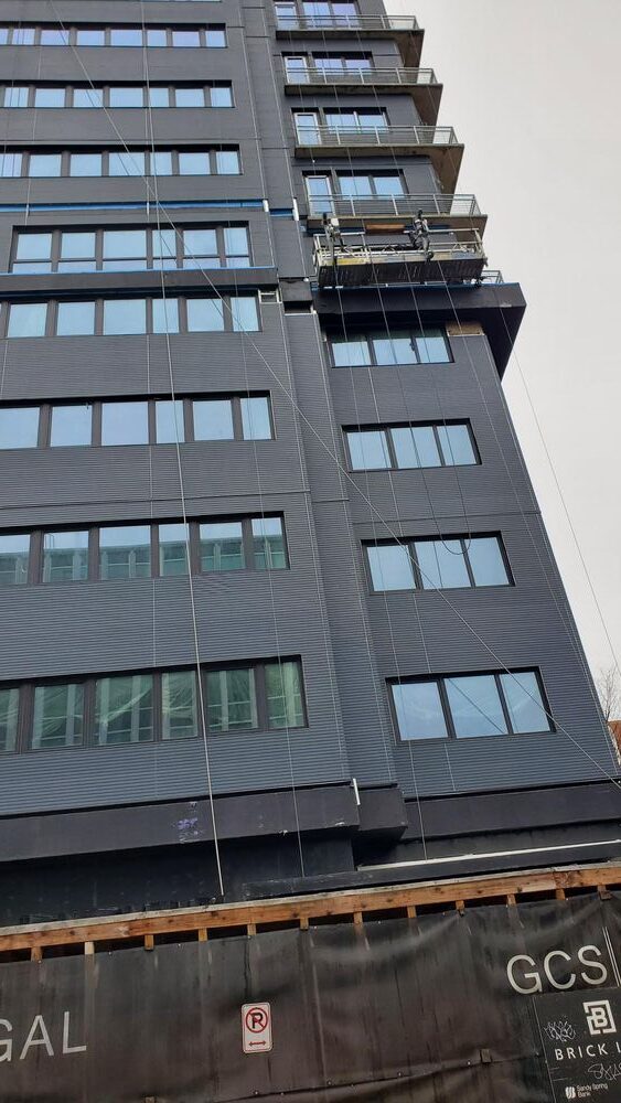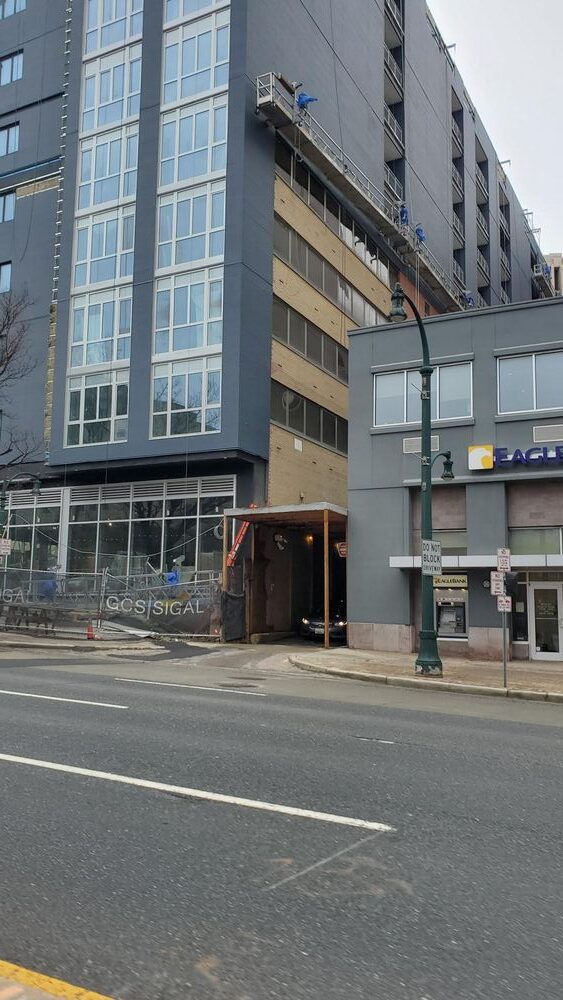 The Guardian project involved a complex adaptive reuse of the former six-story, 1950s-era office building at 8605 Cameron Street into a modern, 11-story mixed-use residential complex. The project, led by Guardian Building Associates as the developer, involved stripping the existing structure down to its steel frame and adding a five-story vertical addition plus a penthouse. The building's Art Deco-inspired aesthetic was designed by Nelson Architects, and the construction firm involved in the conversion was ReVite Construction. This effort successfully transformed an underutilized office property into 178 apartment units and ground-floor retail space.